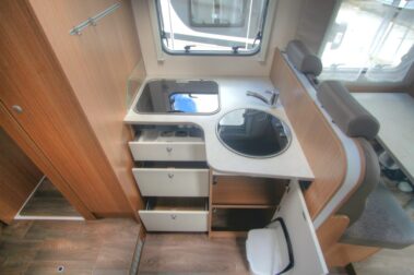 Dispone de calefacción de gama alta Thruma con un mayor número de calorías, no está fija en un sitio, sino que se reparte por toda la autocaravana, incluido en el garaje. Dispone de salida directa de calefacción al baño, con lo cual la ducha es realmente agradable también en invierno con temperaturas muy bajas.