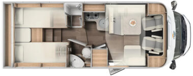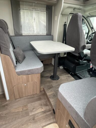 Destaca la disposición de su comedor en L, con amplias zonas de asiento, además de los propios asientos de conductor y copiloto que se pueden girar para obtener dos cómodas plazas adicionales.