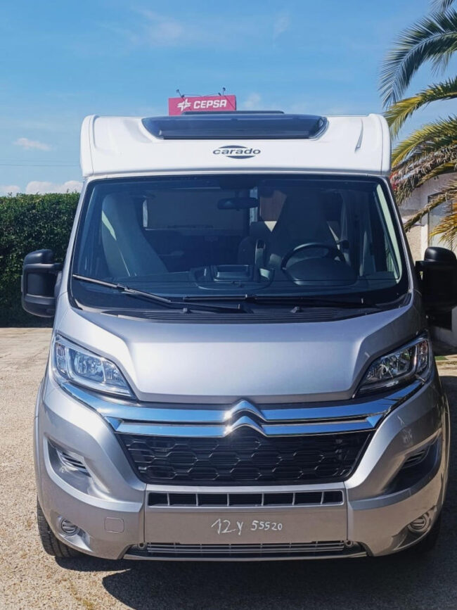 Autocaravana Carado T-459Autocaravana perfilada Carado T-459. 4 Personas viajar y 2/5 personas dormir. 4 Plazas viajar 4 Plazas dormir Fiat Ducato 2.2 140 CV Alto 290 cm Largo 739 cm <img class='wp-image-25204 size-medium aligncenter' src='https://www.autocaravanexpress.es/wp-content/uploads/2024/10/carado_wohmobil_kaufen_teilintegriert_t459_serienausstattung_schlafraum-300x200.webp' alt='' width='300' height='200' /></p> <p style='text-align: center;'><strong>Gran cama central con armarios separados</strong></p> <p> </p> <p style='text-align: center;'><strong><img class='wp-image-25202 size-medium aligncenter'…